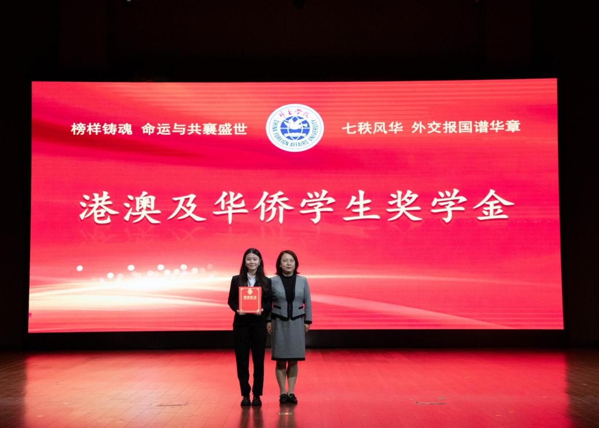 李洪梅副院长为港澳及华侨学生奖学金获奖代表颁发荣誉证书