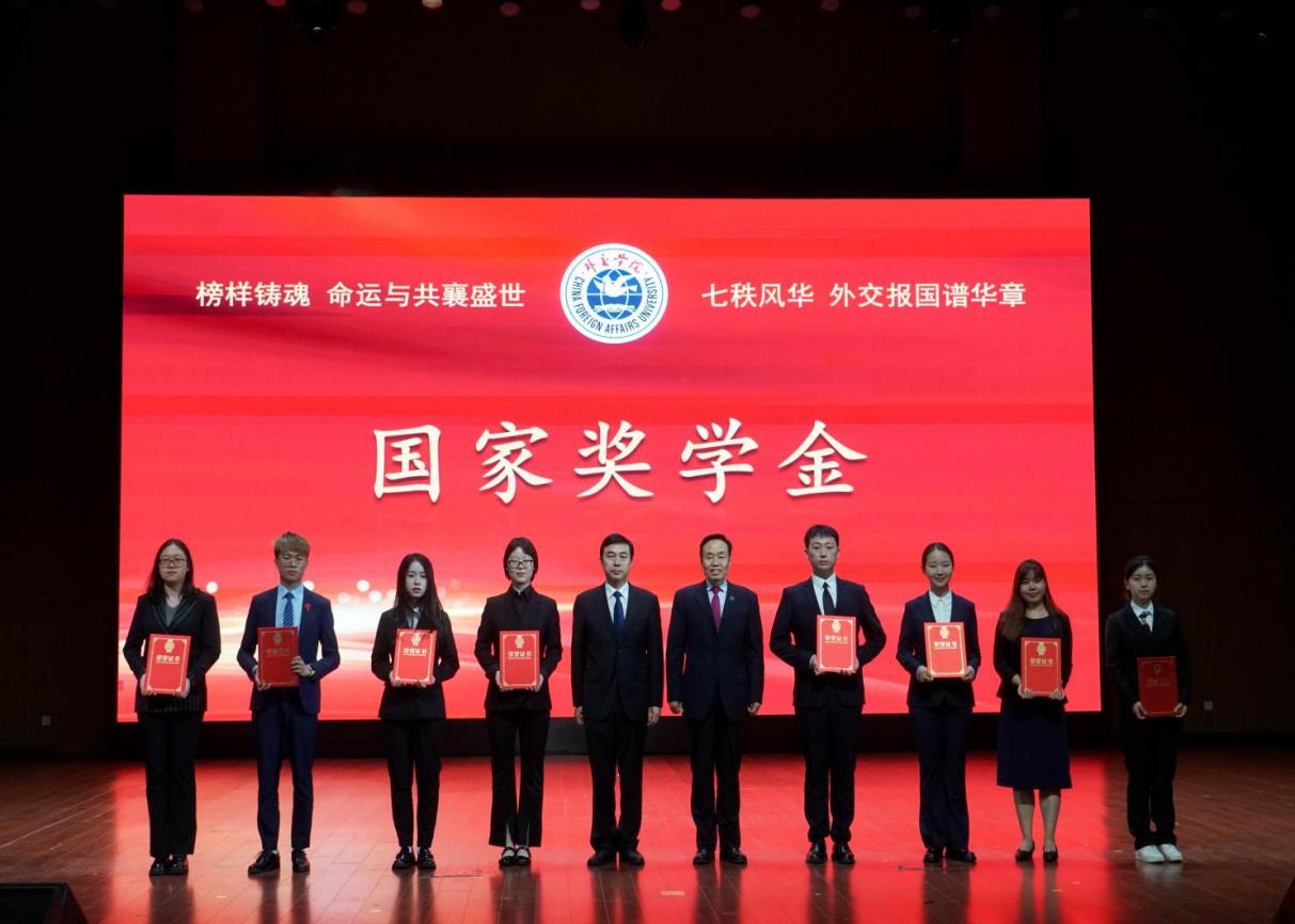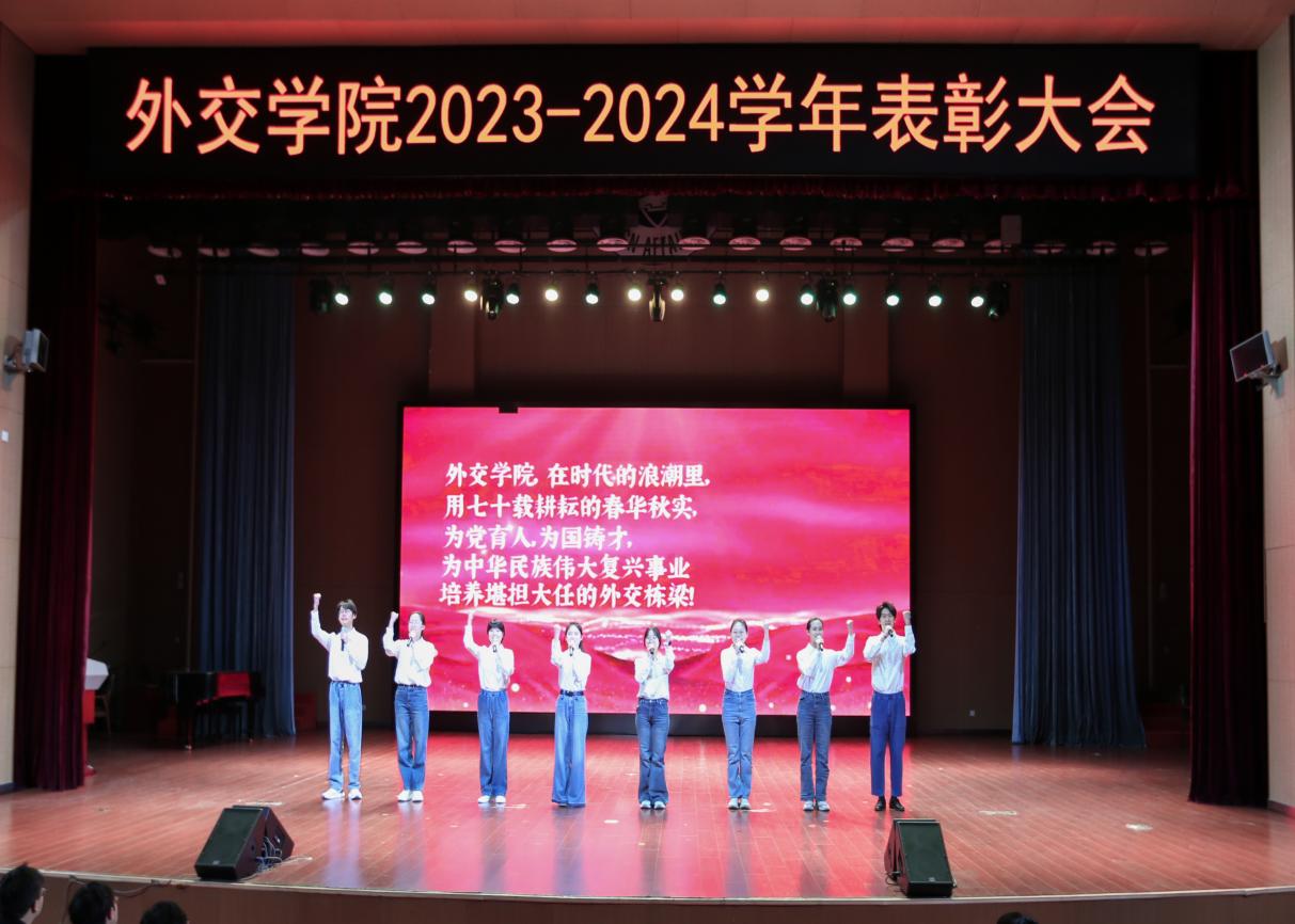 外交学院院长王帆宣读了《关于表彰2023-2024学年度奖学金及荣誉称号获得者的决定》,对获奖同学和集体表示祝贺,希望他们以此次表彰为新起点,继续保持锐意进取的精神,在未来的道路上创造更多佳绩。希望全体同学见贤思齐、敢于超越,努力汲取外交学院的红色养分,做红色中国的传承者。扎实学习“构建人类命运共同体”核心理念,做中国主张的传播者。坚持用外交报国的理想信念凝心铸魂,做中华民族伟大复兴的践行者。