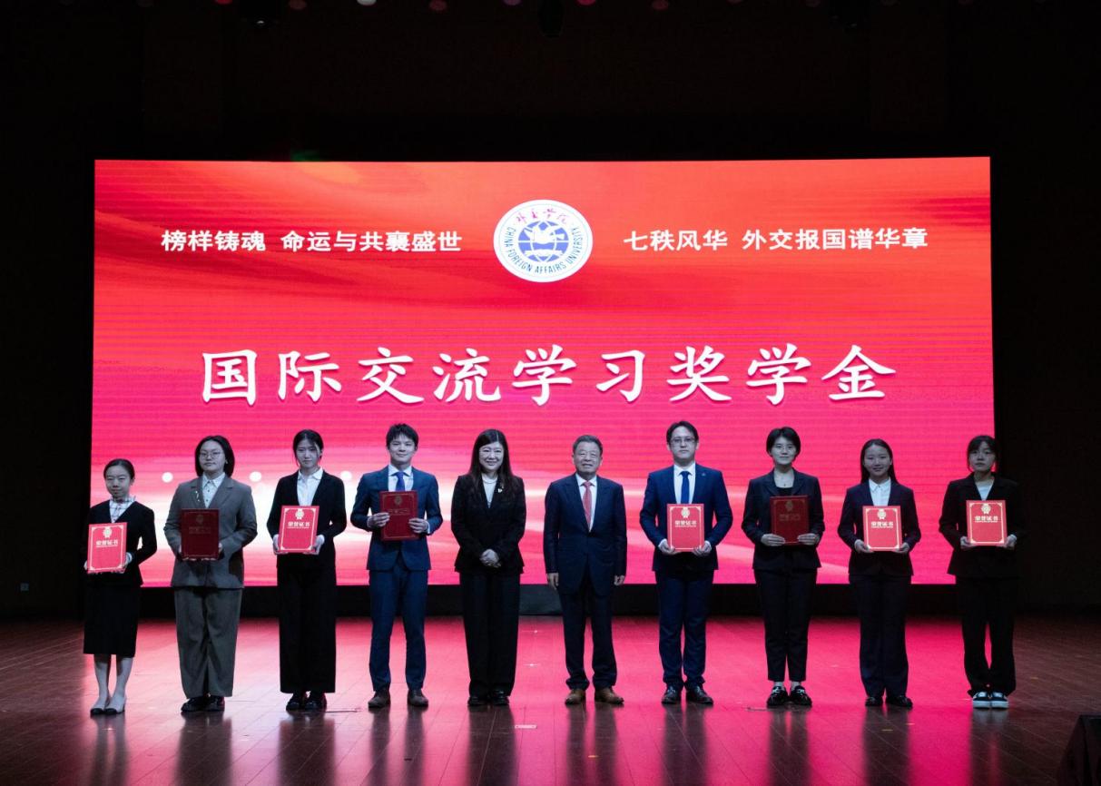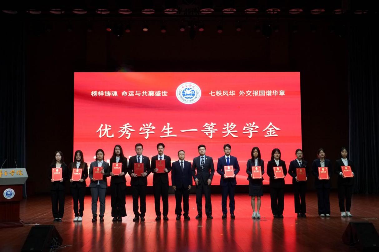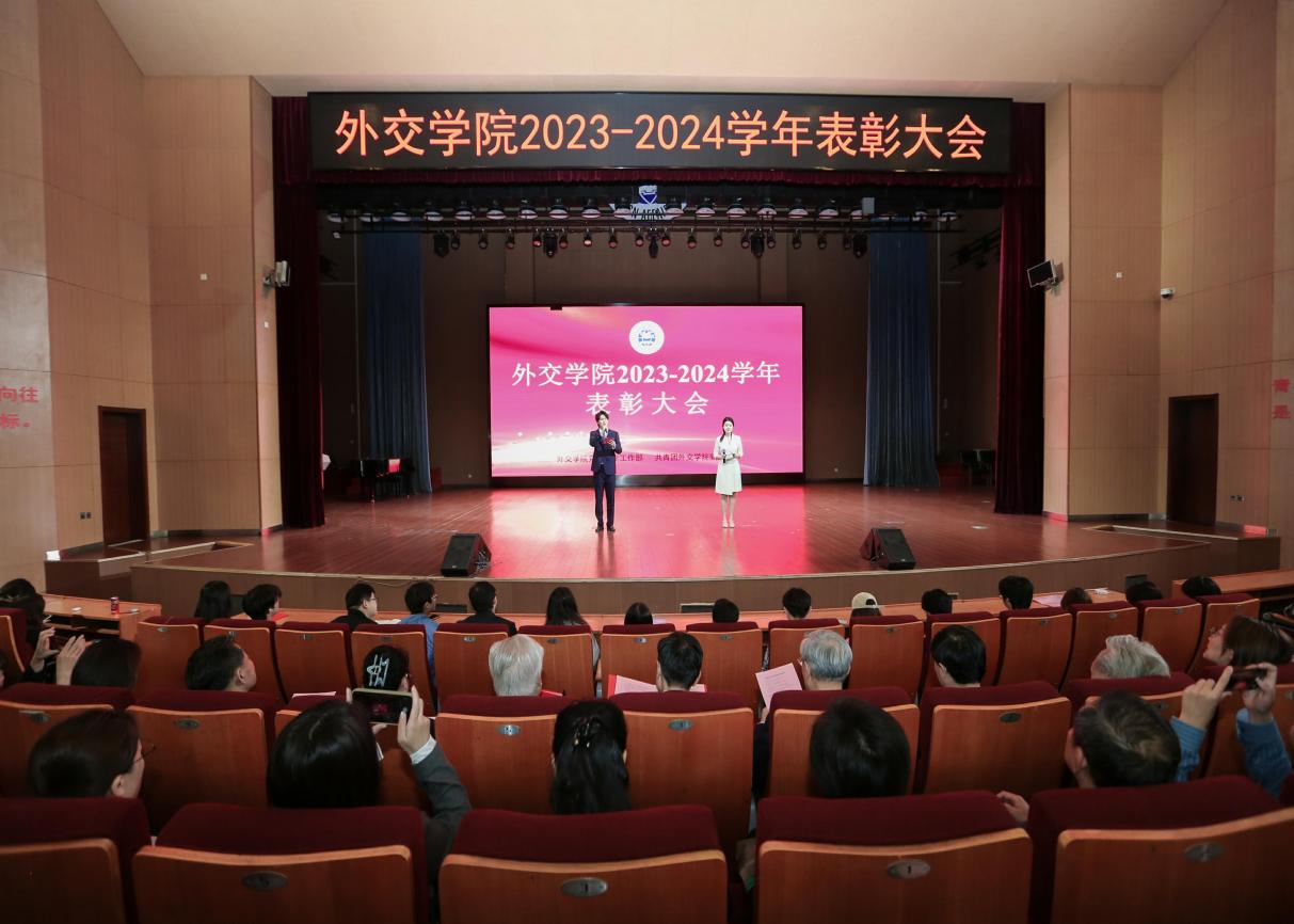 为扎实落实全国教育大会精神和外交青年“铸魂工程”建设,外交学院以习近平新时代中国特色社会主义思想培根铸魂,以推动构建人类命运共同体彰显青年使命与责任担当,以青春榜样的熠熠光彩献礼外院七十周年璀璨华诞,2025年5月7日在沙河校区隆重举办2025年“榜样铸魂,命运与共襄盛世;七秩风华,外交报国谱华章”主题教育活动暨2023-2024学年表彰大会。北京大鸾翔宇慈善基金会会长周秉德、章文晋奖学金捐赠方代表章百家等冠名奖学金捐赠方代表、全体校领导、院内各部门负责人出席大会。表彰大会开始前,王世廷书记、王帆院长等院领导会见了出席表彰大会的各冠名奖学金捐赠方嘉宾。