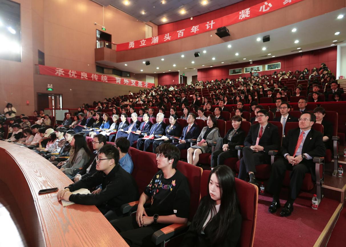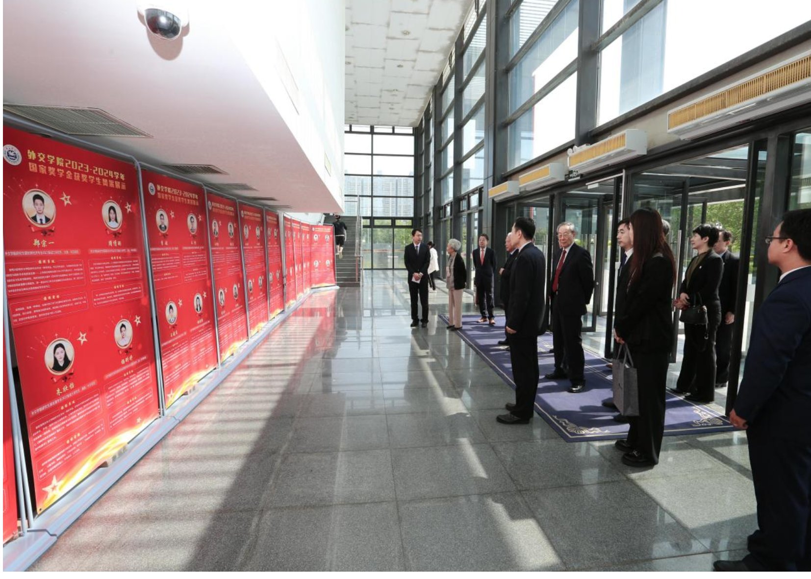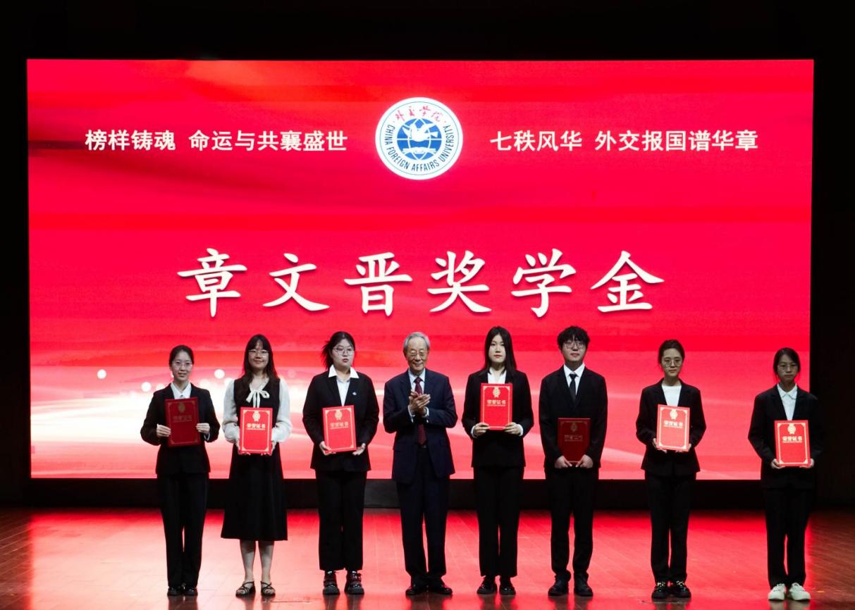 为扎实落实全国教育大会精神和外交青年“铸魂工程”建设,外交学院以习近平新时代中国特色社会主义思想培根铸魂,以推动构建人类命运共同体彰显青年使命与责任担当,以青春榜样的熠熠光彩献礼外院七十周年璀璨华诞,2025年5月7日在沙河校区隆重举办2025年“榜样铸魂,命运与共襄盛世;七秩风华,外交报国谱华章”主题教育活动暨2023-2024学年表彰大会。北京大鸾翔宇慈善基金会会长周秉德、章文晋奖学金捐赠方代表章百家等冠名奖学金捐赠方代表、全体校领导、院内各部门负责人出席大会。表彰大会开始前,王世廷书记、王帆院长等院领导会见了出席表彰大会的各冠名奖学金捐赠方嘉宾。