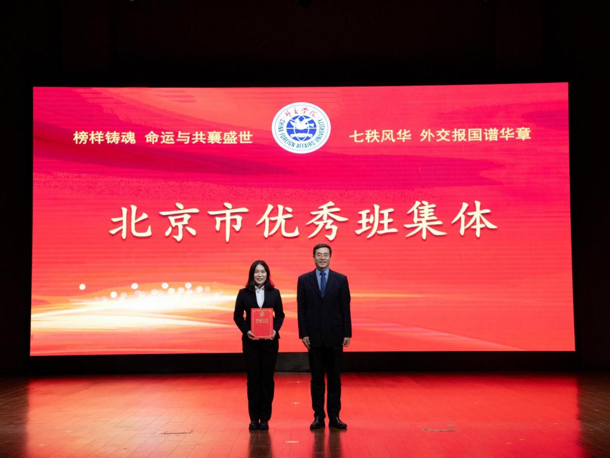 高飞副院长为“北京市优秀班集体”获奖代表颁发荣誉证书