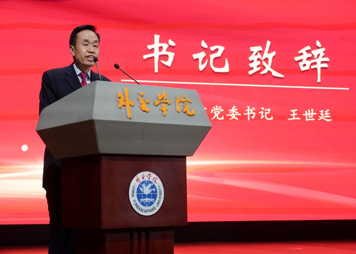 外交学院党委书记王世廷在致辞中向荣获表彰的个人和集体表示热烈的祝贺,希望同学们认真学习领会总书记对青年的寄语,继承发扬五四精神,以"信念灯塔"指引青春征程,做心怀"国之大者"的逐梦者。以"实践之犁"深耕能力沃土,做甘当"负重前行"的躬耕者。以"创新之翼"搏击时代浪潮,做善为"破冰突围"的探路者。赓续传承外交学院的红色基因,不负重托、勇担使命,用实际行动庆贺外院七十华诞,在构建人类命运共同体的伟大事业中书写更加绚丽的青春篇章。