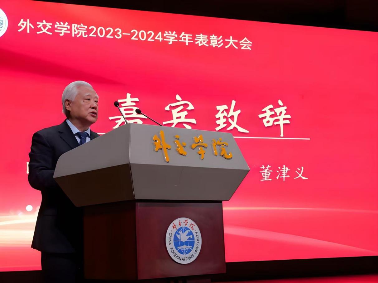 前驻意大利共和国兼驻圣马力诺共和国大使、前驻瑞士联邦大使董津义作为嘉宾代表发表致辞,希望外院学子传承外交精神,勇担时代使命,不断提升自己的综合素质,培养全球视野和跨文化交流能力,以专业所长服务国家战略需要,让青春在建设祖国与服务人民的事业中绽放绚丽光彩。