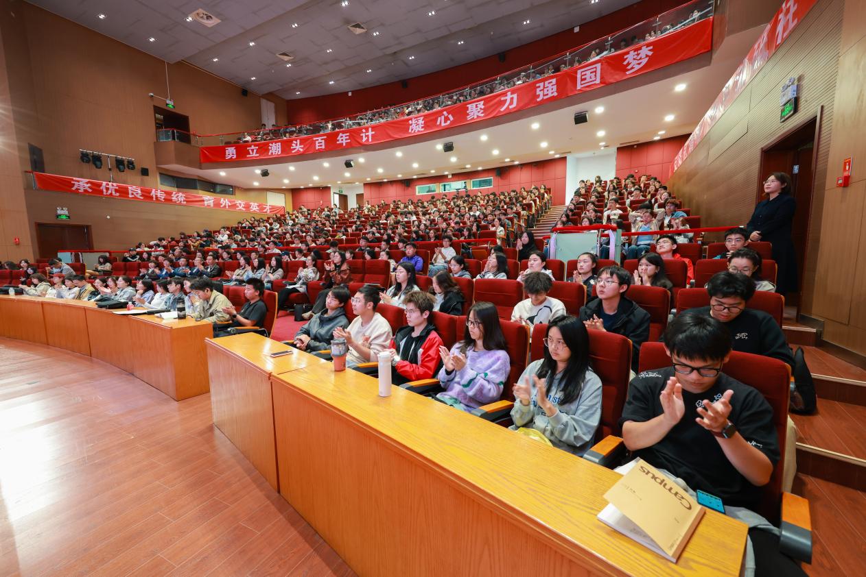 10月15日下午,学院党委书记王世廷大使在沙河校区为2025级全体学生讲授“思政大课”。孙吉胜副院长主持。