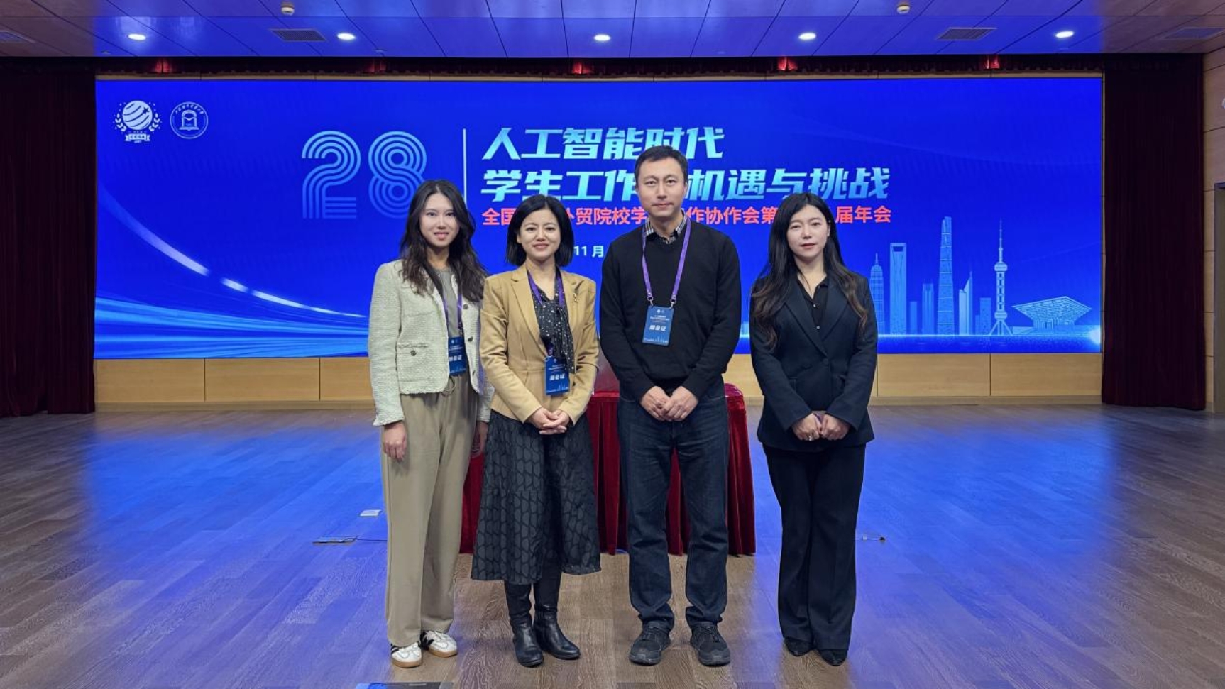 2025年11月13日至14日,院专职党委副书记周莉带队赴上海对外经贸大学参加全国外语外贸院校学生工作协作会第二十八届年会。党委学生工作部部长郭延凯,校团委副书记徐婧琪,毕业生就业指导中心副主任张心怡参加年会。